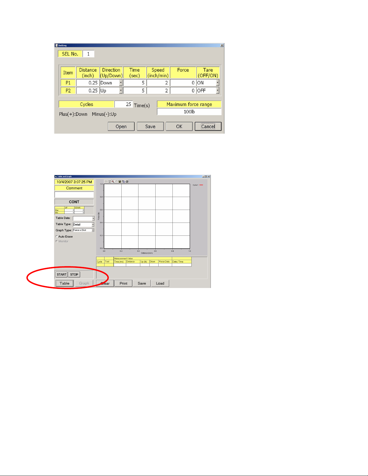 1. Set the force gauge to 19200 Baud rate