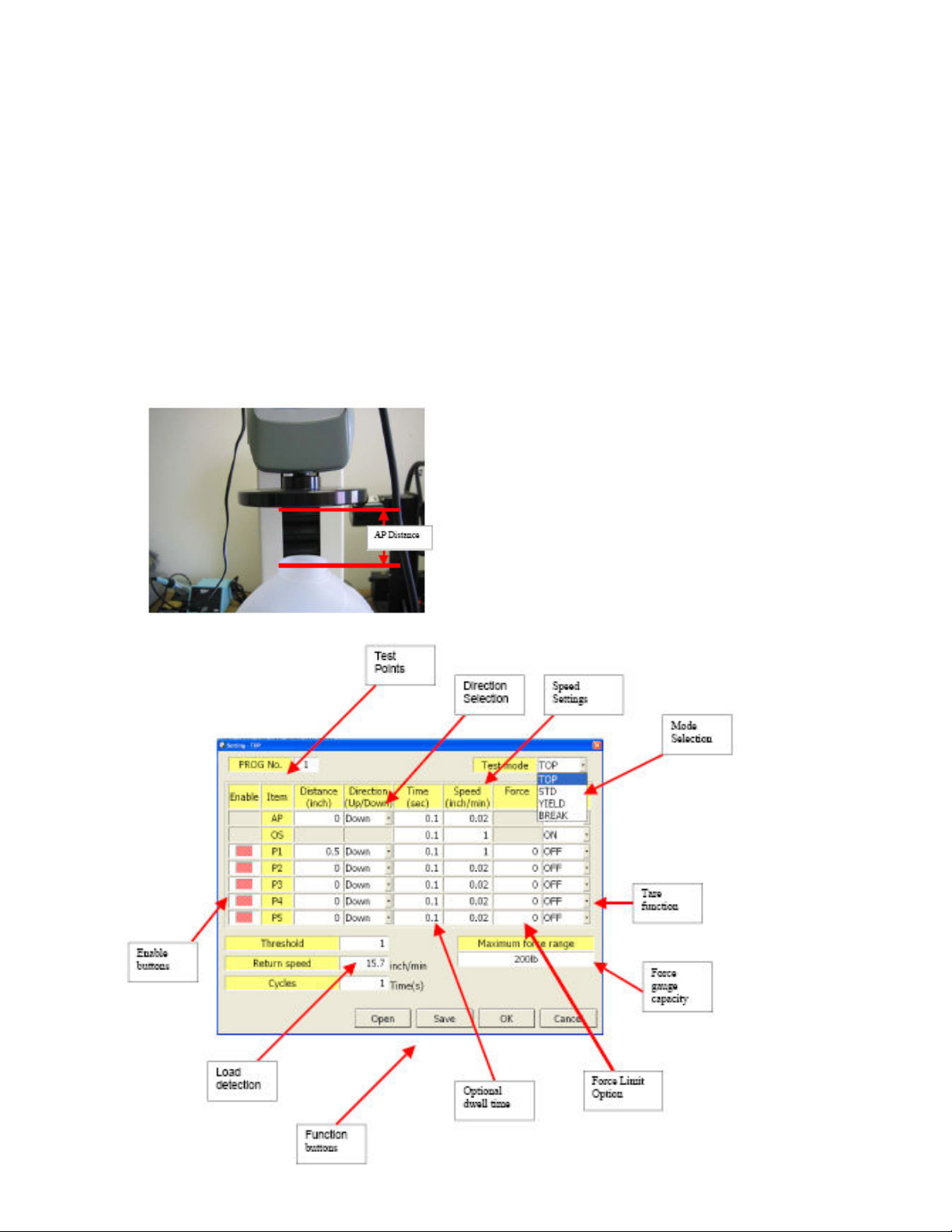 • Programmable functions (Top Load Test, Standard Test, Break Test)