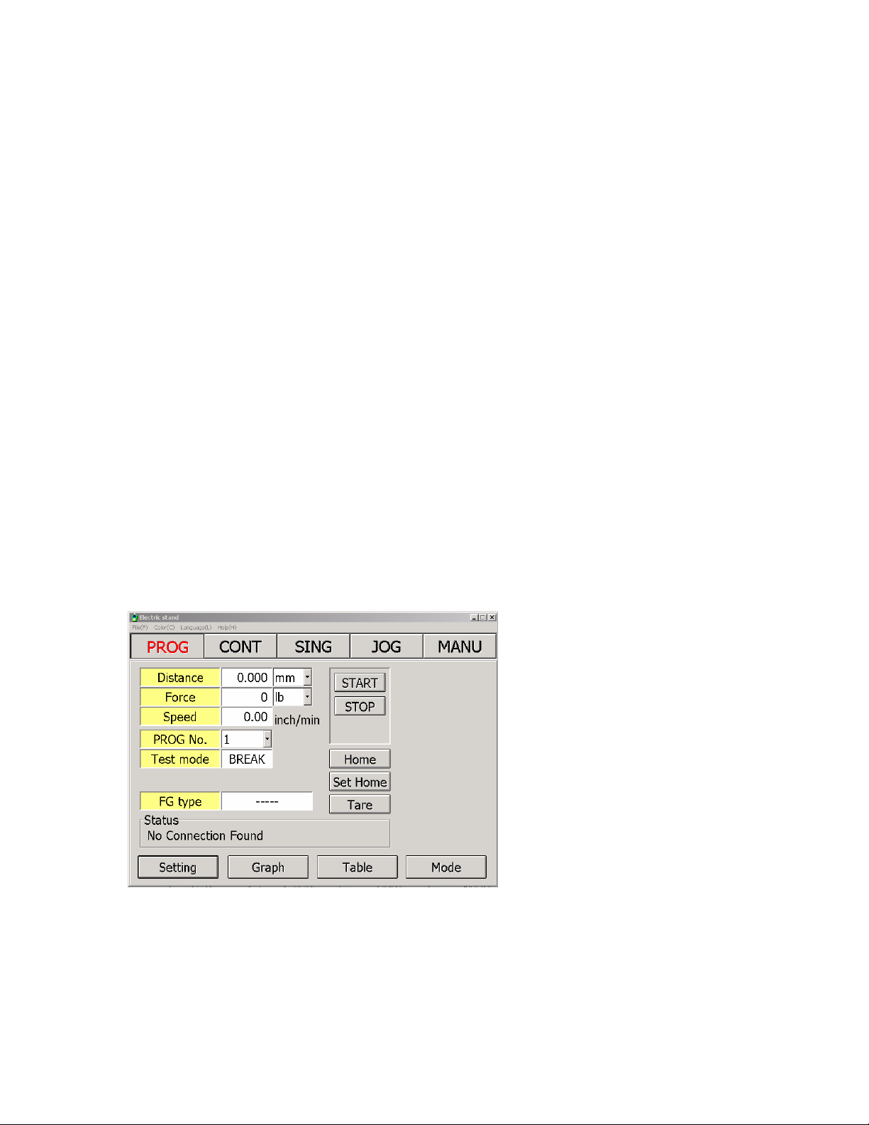2. JOG (Jog Mode) Adjustment mode the test stand bracket will move based