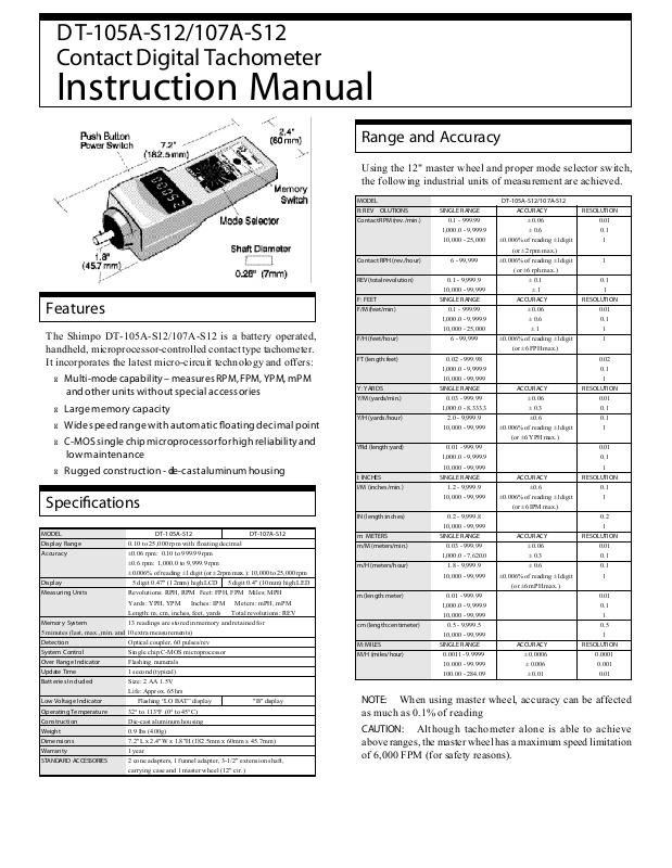 The Shimpo DT-105A-S12/107A-S12 is a battery operated,