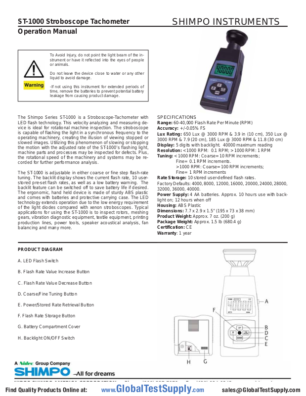 The Shimpo Series ST-1000 is a Stroboscope-Tachometer with