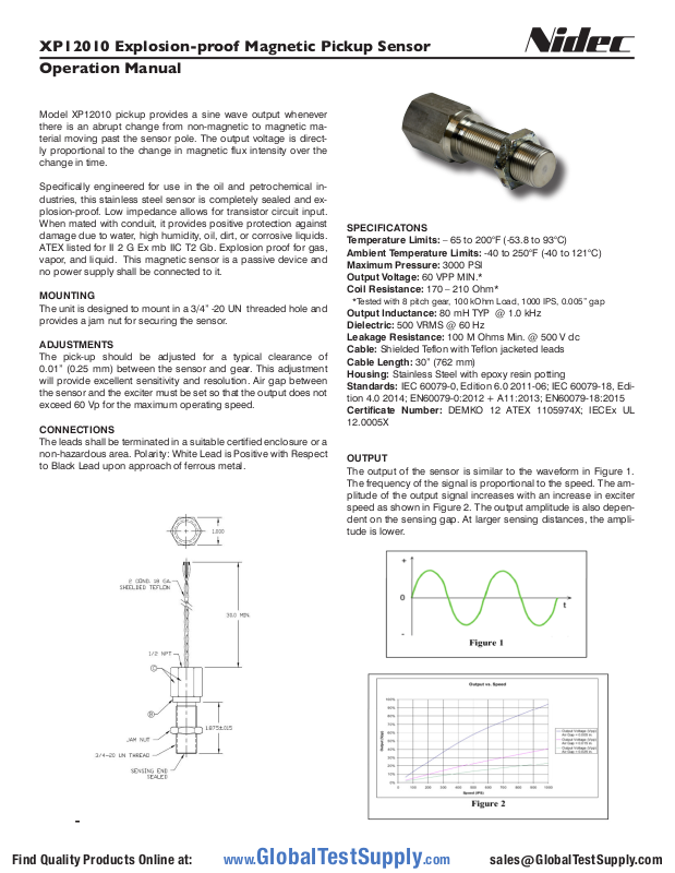XP12010 Explosion-proof Magnetic Pickup Sensor