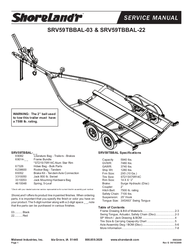 Contact your authorized ShoreLand’r dealer if you experience a problem with your trailer. To locate a dealer,