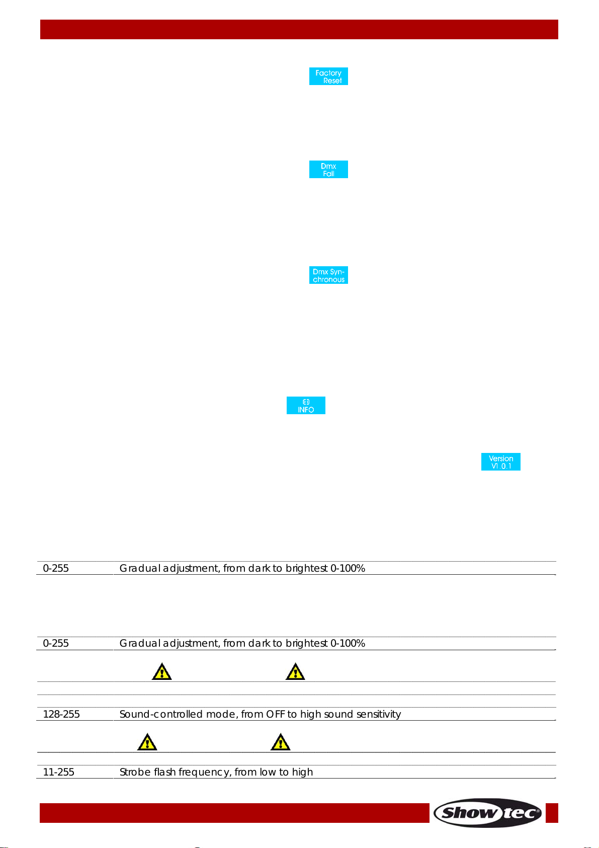 02) Check the DMX cable: Unplug the unit; change the DMX cable; then reconnect to electrical power.
