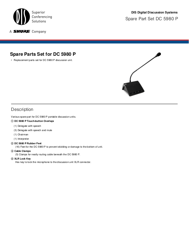 Shure DC 5980 P Specification Sheet