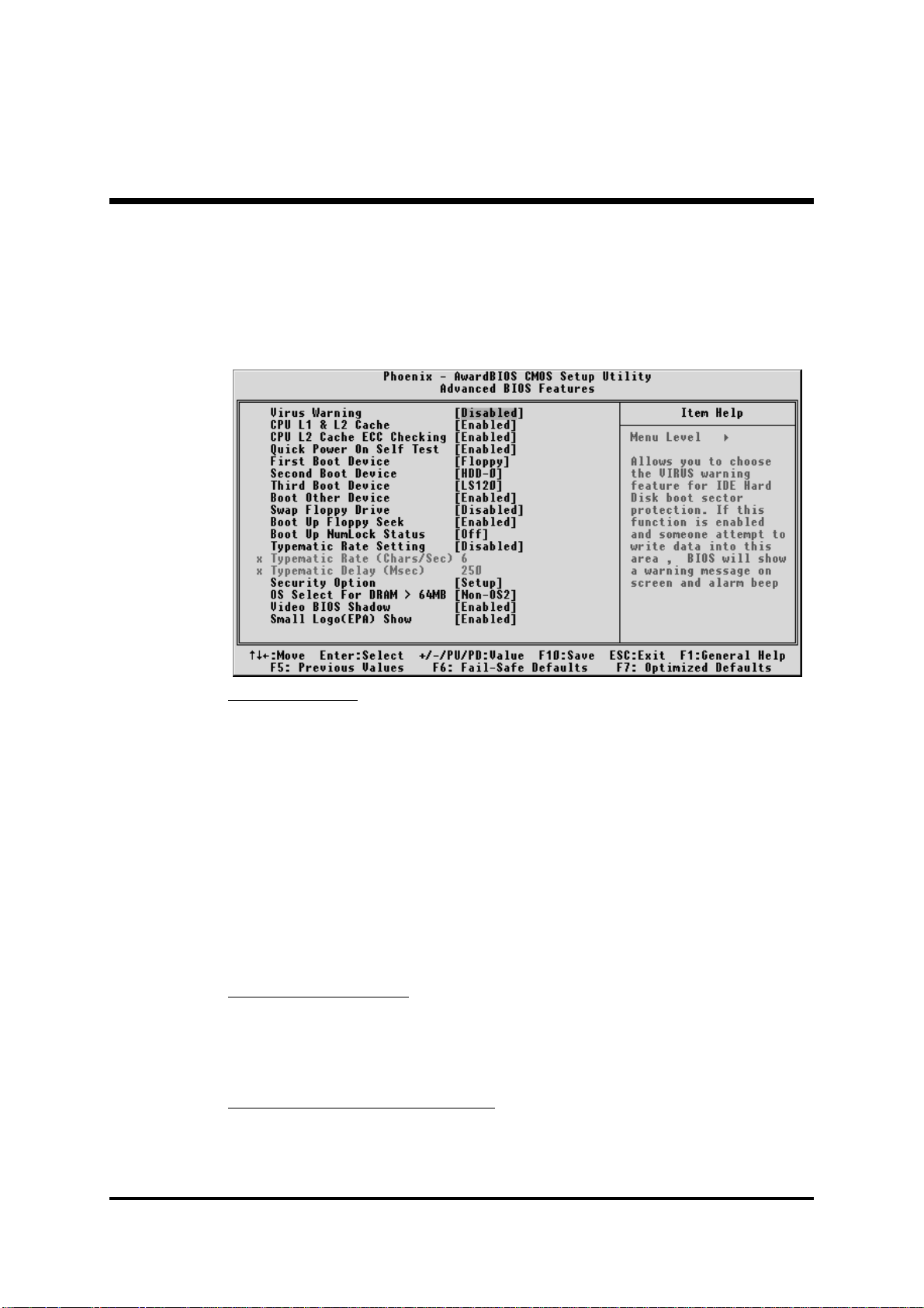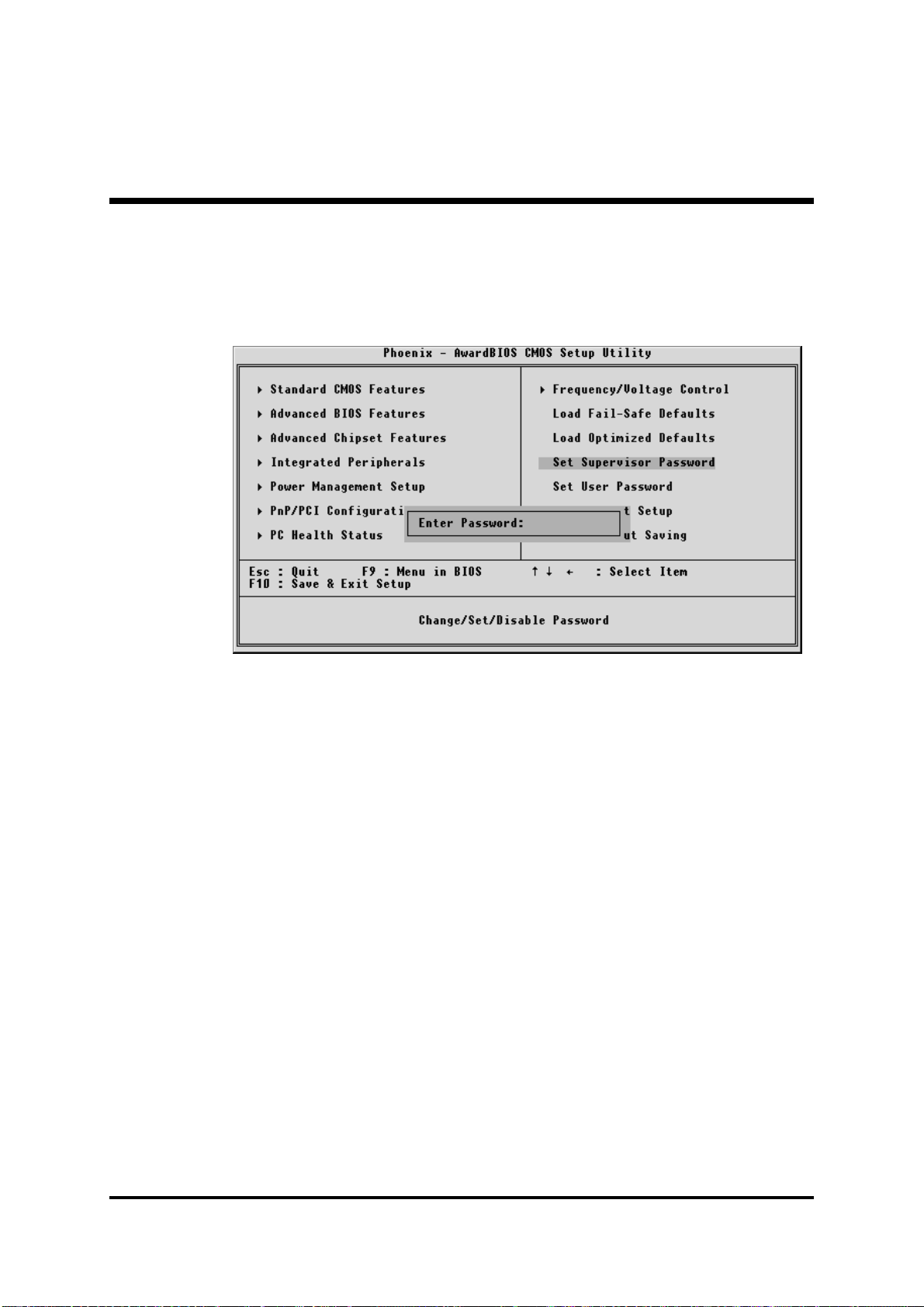 rebooted or you try to enter Setup. If you select Setup at Security Option of BIOS Features Setup Menu, you will be prompted only when