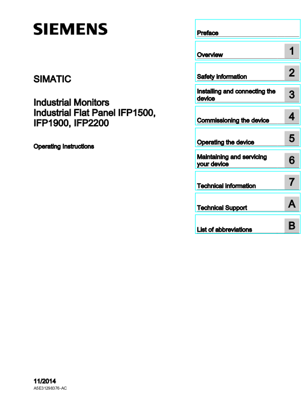 These operating instructions contain all the information you need for commissioning and operation of the SIMATIC Industrial Flat Panel IFP.