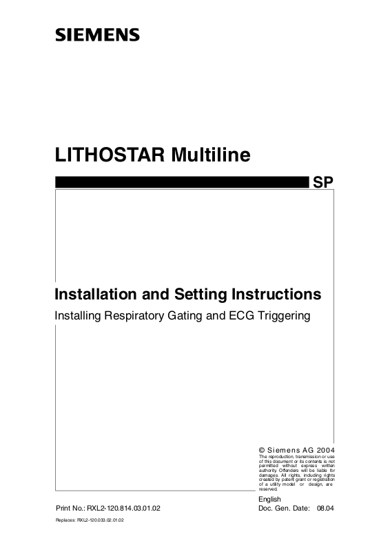 Siemens AG RXL2-120.814.03 Page 5 of 6 LITHOSTAR Multiline
