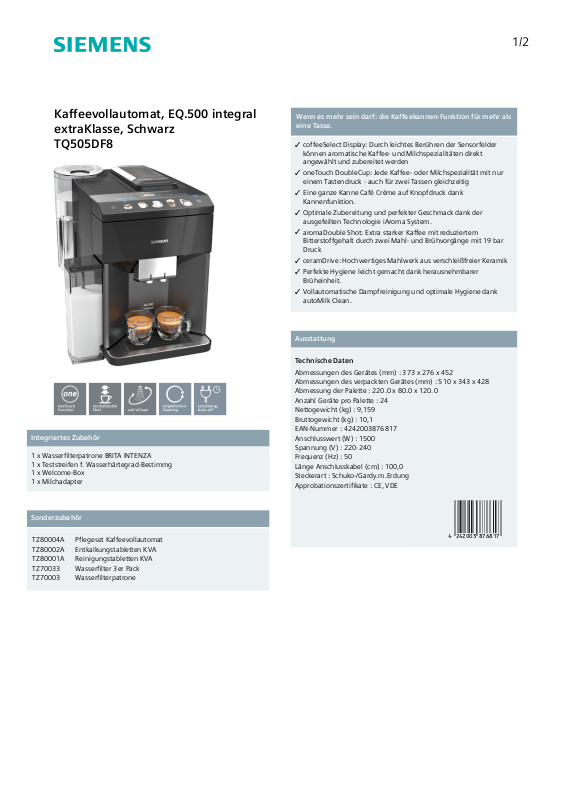 Kaffeevollautomat, EQ.500 integral