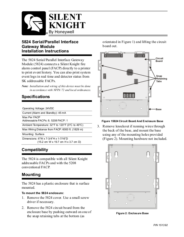 5824 Serial/Parallel Interface Gateway Module Installation Instructions
