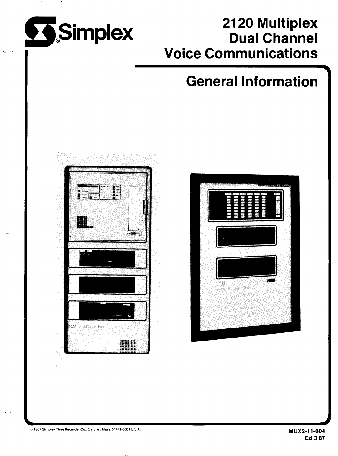 Simplex Time Recorder Co.. 0 Simplex Plaza l Gardner. Massachusetts 01441-0001 U.S.A.