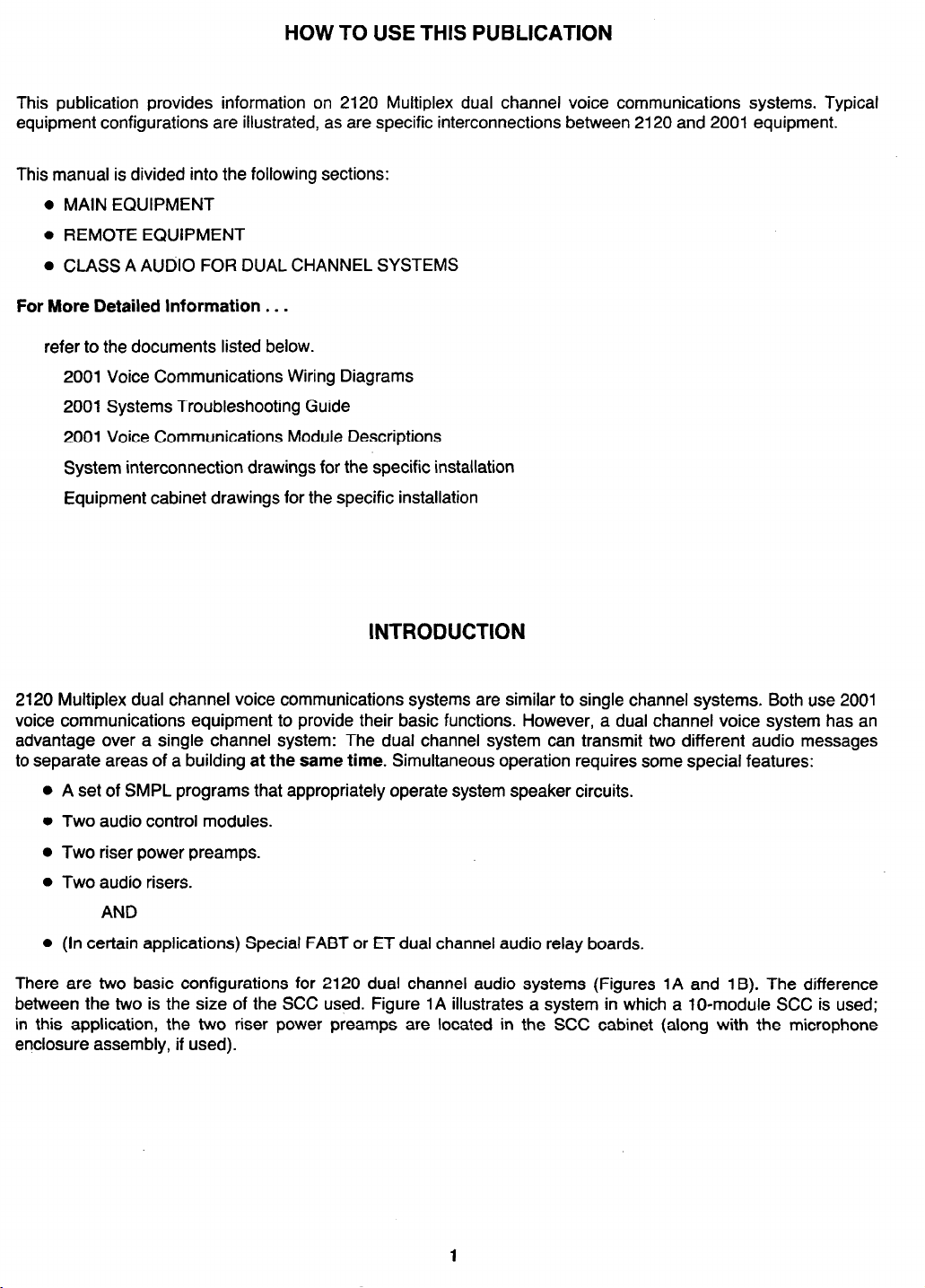 This publication provides information on 2120 Multiplex dual channel voice communications systems. Typical