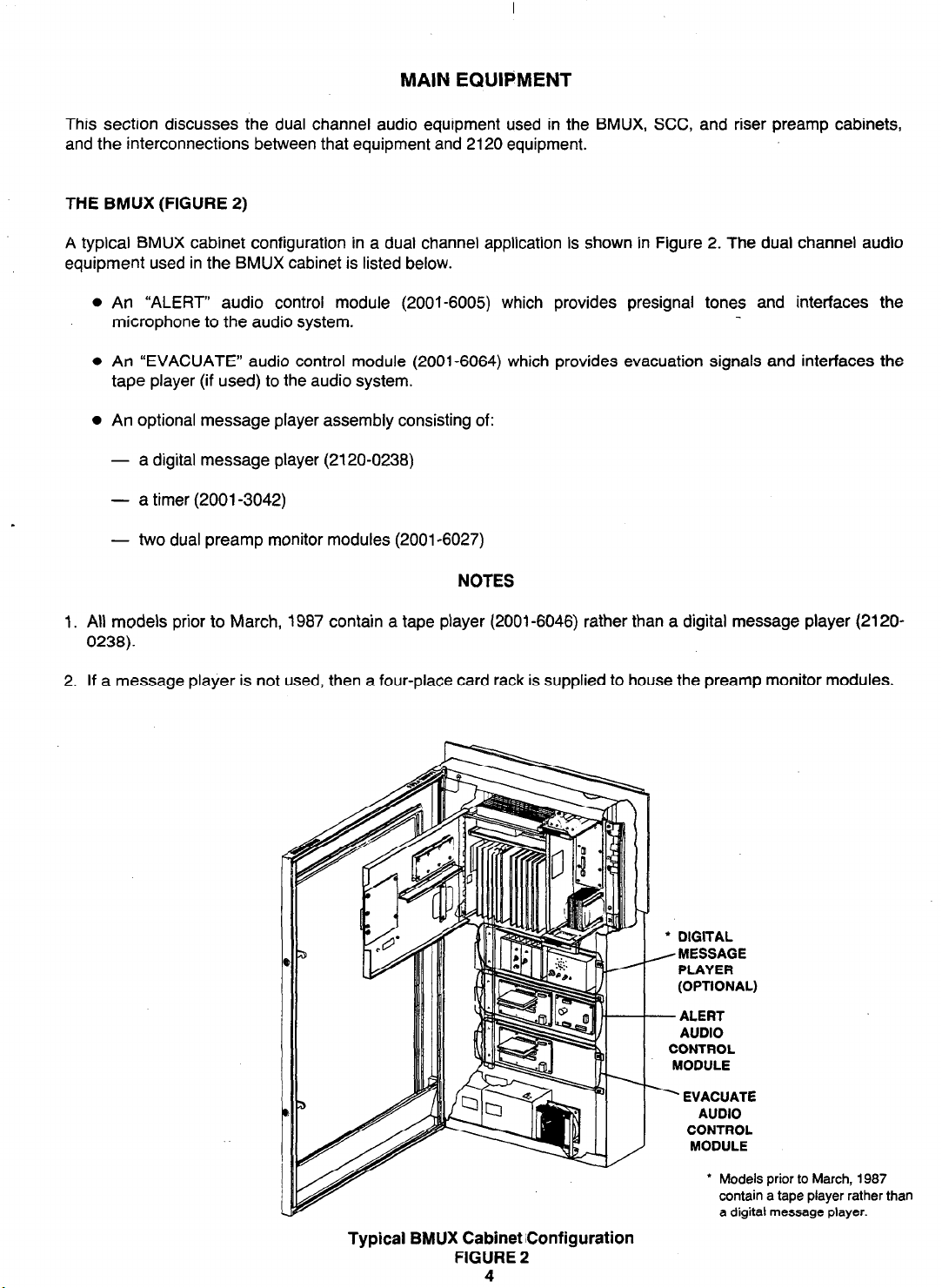 1. All models prior to March, 1987 contain a tape player (2001-6046) rather than a digital message player (2120-