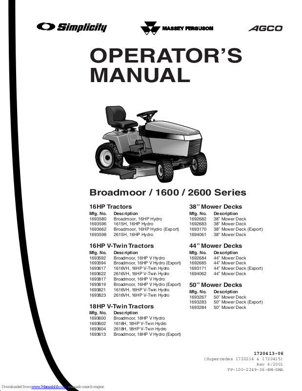 PTO, set parking brake, stop engine, and remove keys before dismounting.