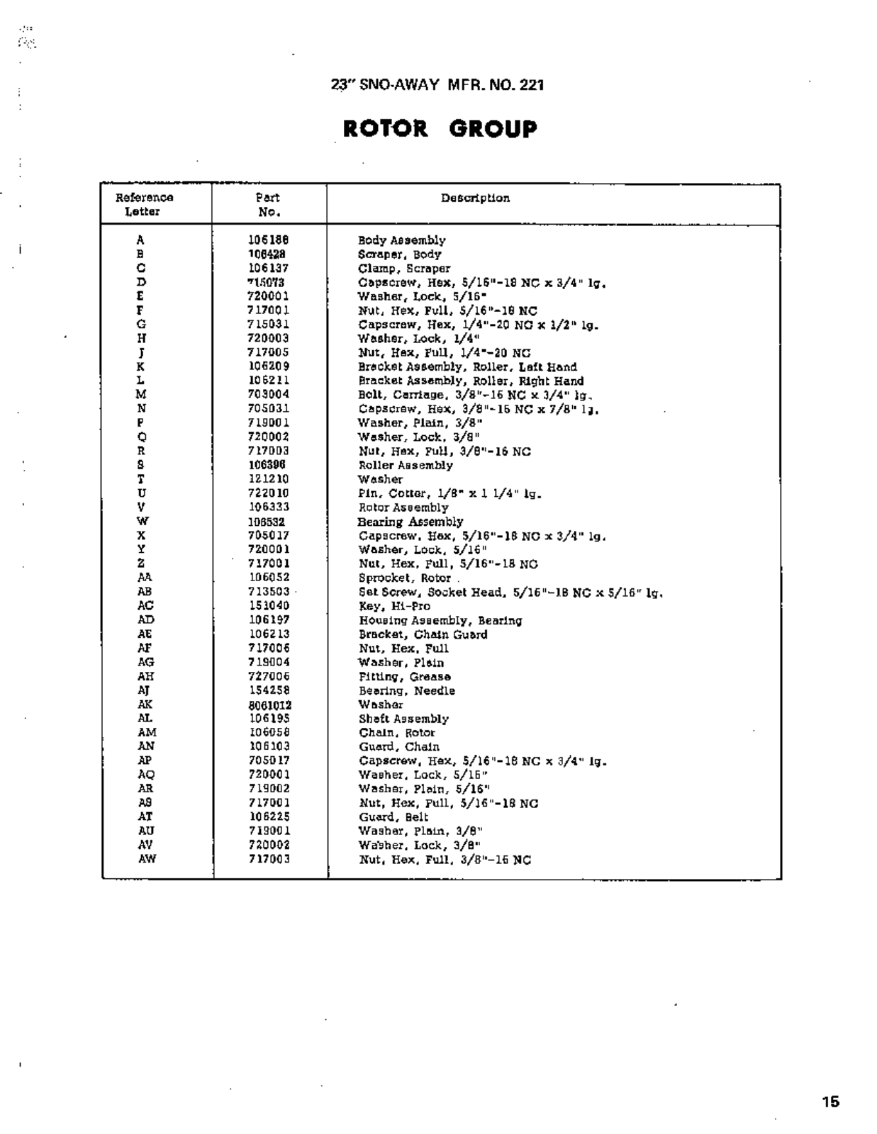 - Rotor Group: Body Assembly, Hex Capscrew, Lock Washer
