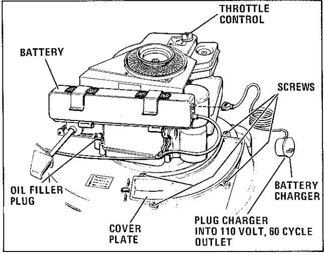 CÁUTION: Do not charge the battery at temperature below 40o F, and use only the charger furnished with the mower, or the battery will be damaged.
