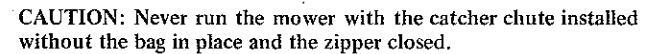 The mowing pattern while catching the clippings can be varied to suit the lawn arrangement. Best lawn appearance will result if the direction of mowing is alternated each mowing and a diagonal mowing pattern is used every 4th time.
