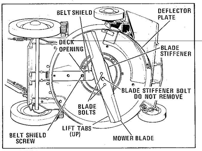 Do not attempt to remove the blade unless you have box, socket, or open-end wrenches which fit the bolts. If you have such equipment procede as follows: