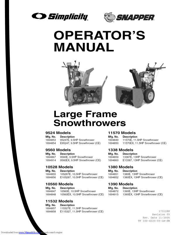 1694872 1390E, 13HP Snowthrower