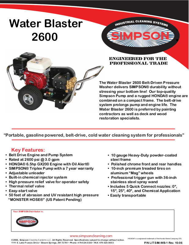 ©2006, Simpson Cleaning Systems LLC. All Rights Reserved. Specifications subject to change without notice.