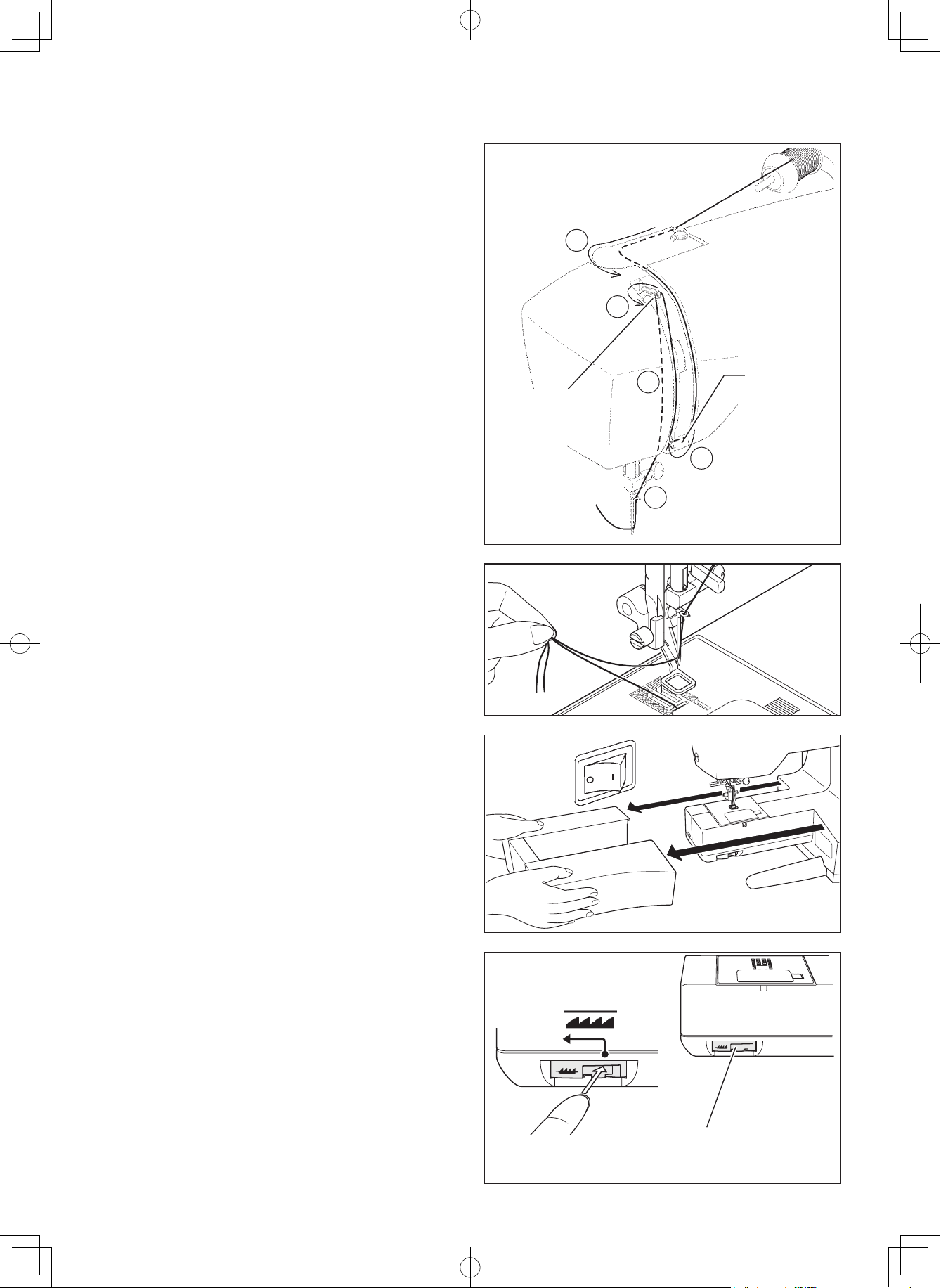 prensatelas antes de empezar a coser, - Sacar ambos hilo