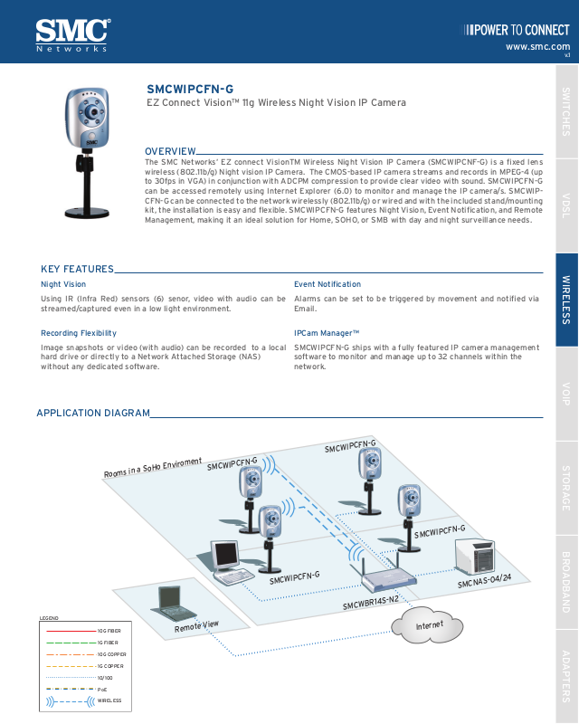 kit, the installation is easy and fl exible. SMCWIPCFN-G features Night Vision, Event Notifi cation, and Remote
