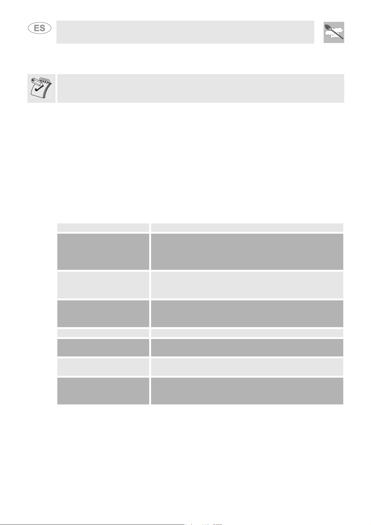 8.6 Tabla de cocciones aconsejadas .................................................................................................................. 75