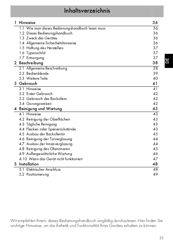 1.1 Wie man dieses Bedienungshandbuch lesen muss36