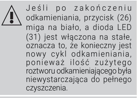 cyklu odkamieniania i późniejszym płukaniu. Po pierwszym cyklu, urządzenie wymaga cyklu płukania. Zastosować się do wskazówek z paragrafu "Czyszczenie i Konserwacja". |
