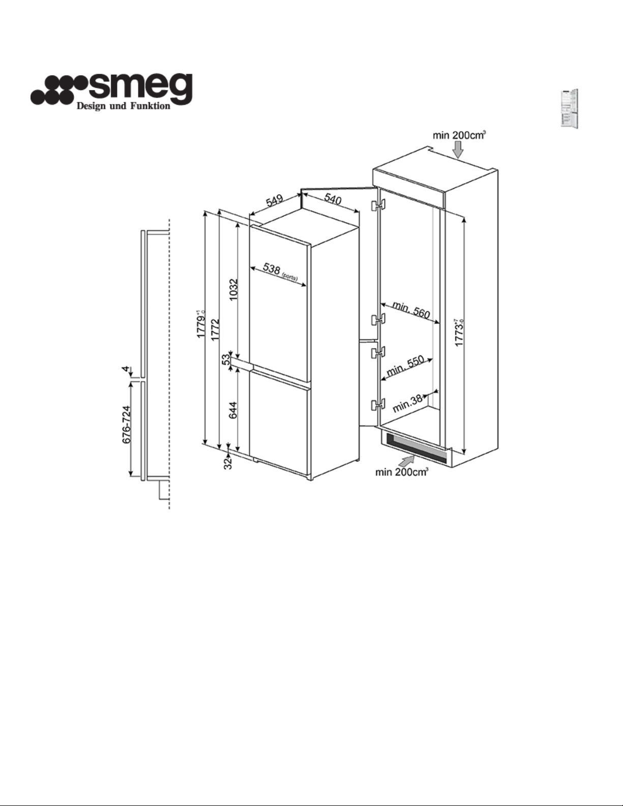 Einbau-Kühl-/Gefrierkombination, Schlepptürtechnik,