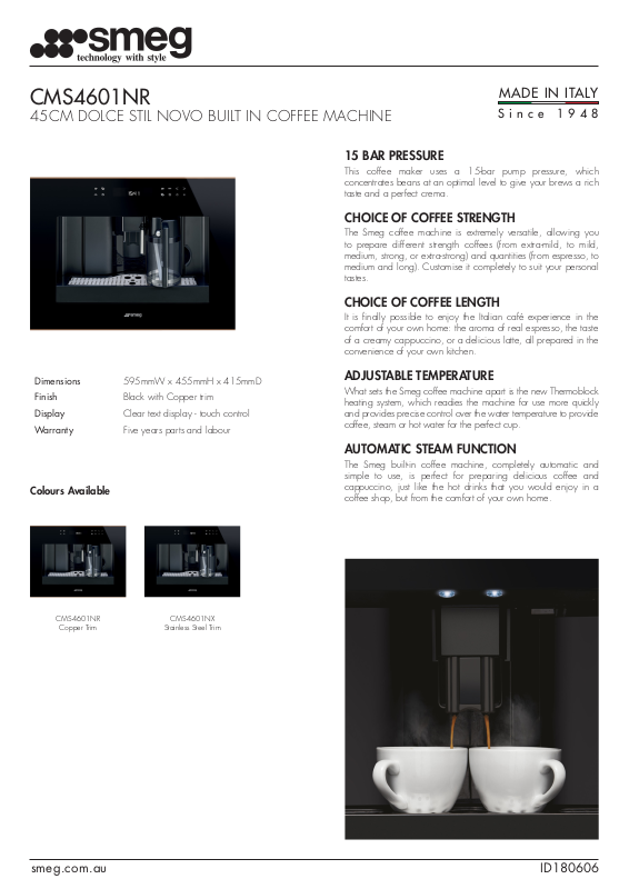 45CM DOLCE STIL NOVO BUILT IN COFFEE MACHINE