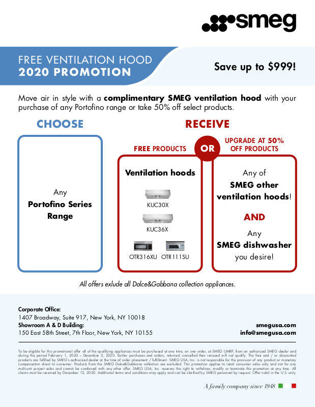 multi-unit project sales and cannot be combined with any other offer. SMEG USA, Inc. reserves the right to withdraw, modify or terminate this promotion at any time. All