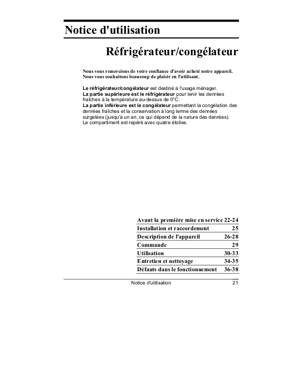 Le réfrigérateur/congélateur est destiné à l'usage ménager.