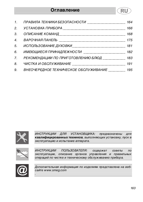 Дополнительная информация по изделиям представлена на вебсайте www.smeg.com