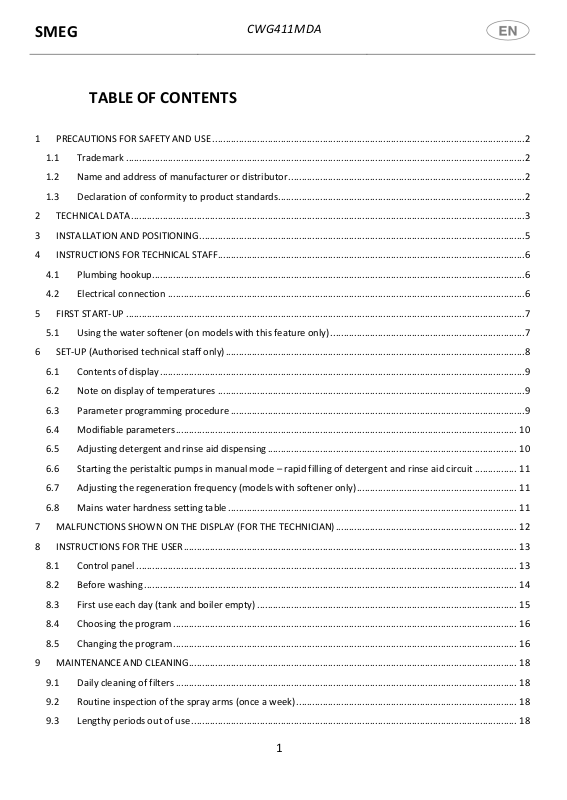 INFORMATION AND SERVICE FOR SMEG PROFESSIONAL DISHWASHERS