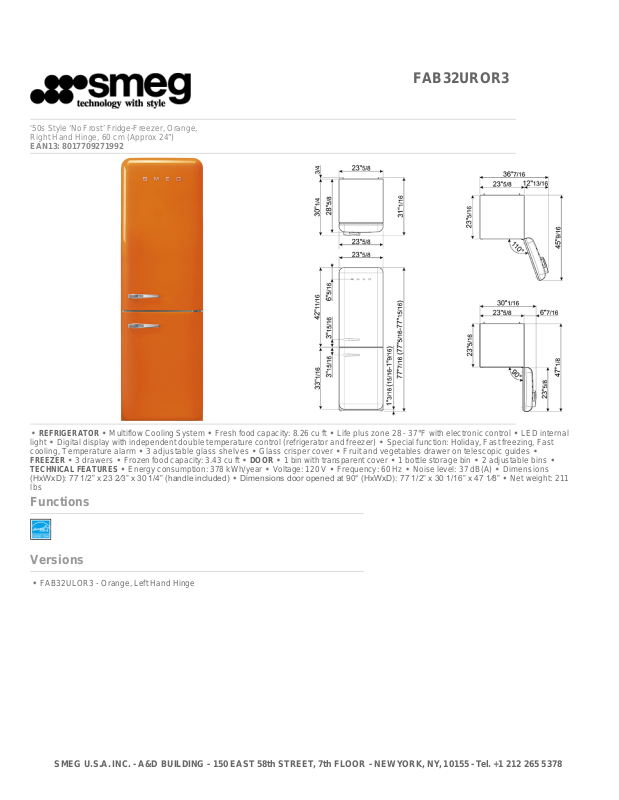 SMEG U.S.A. INC. - A&D BUILDING - 150 EAST 58th STREET, 7th FLOOR - NEW YORK, NY, 10155 - Tel. +1 212 265 5378