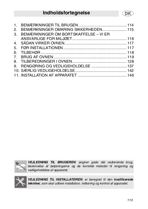 VEJLEDNING TIL INSTALLATØREN: er beregnet til den kvalificerede