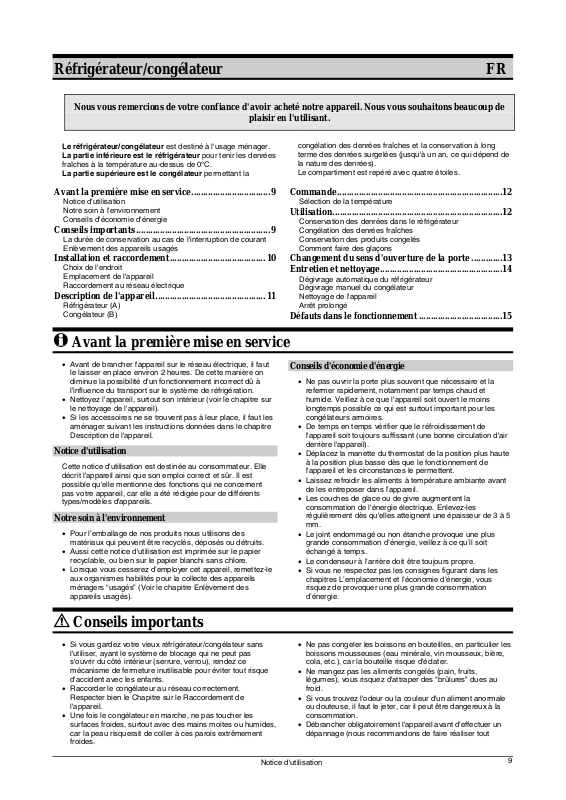 recommandé de le vider, débrancher, dégivrer et nettoyer.