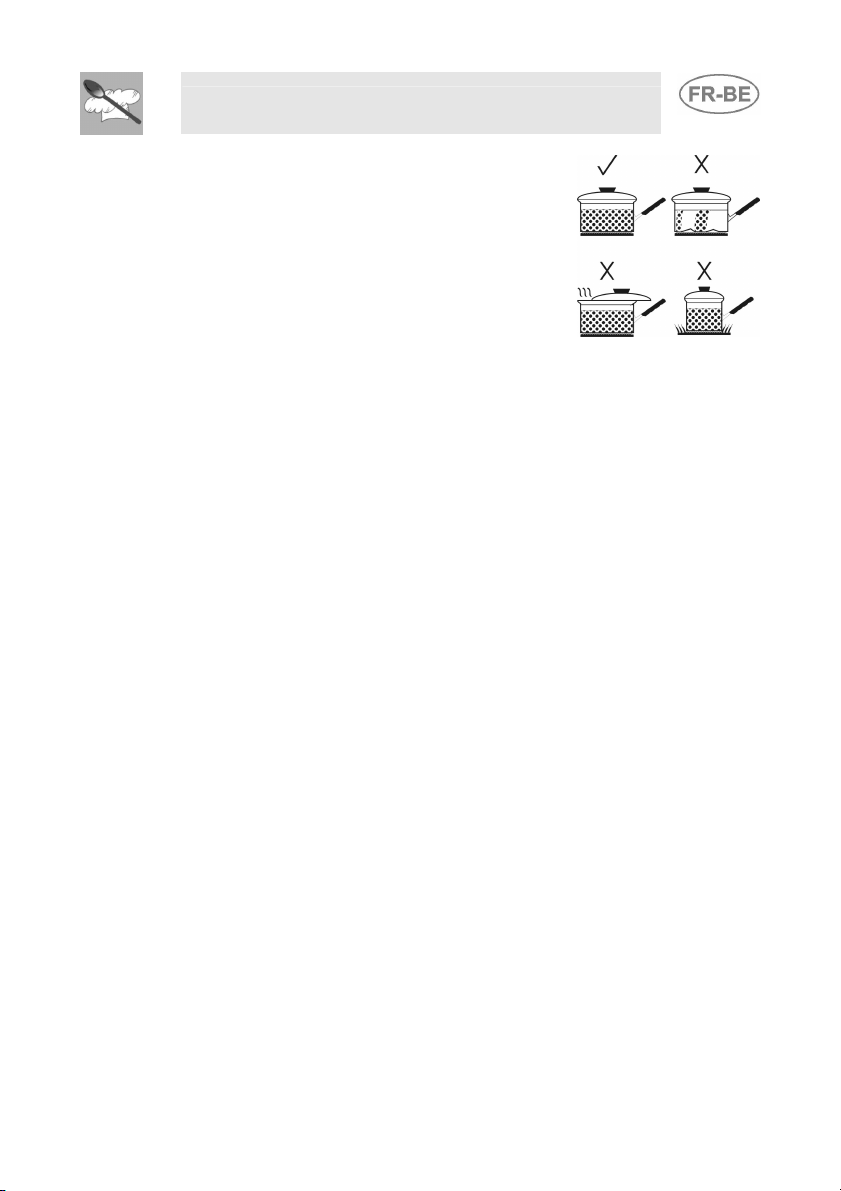 • Ne jamais utiliser des casseroles plus petites que la plaque.