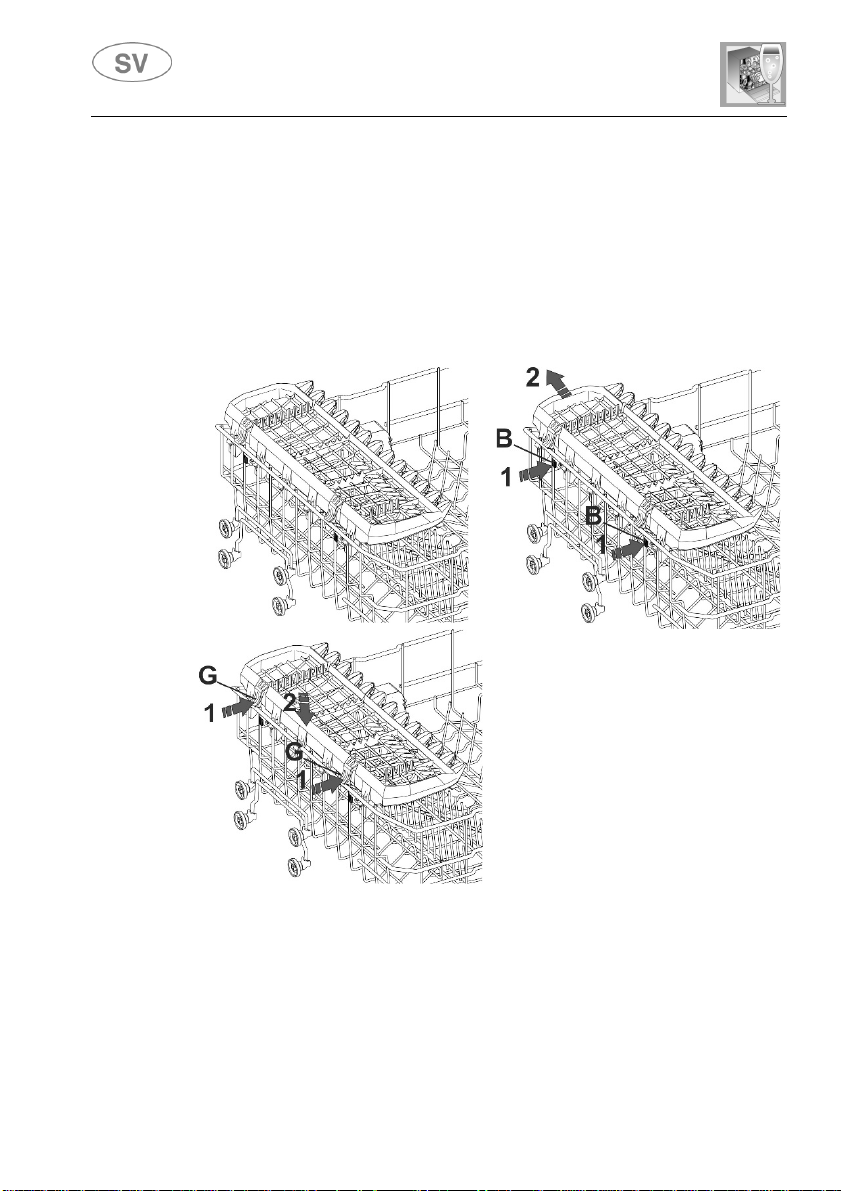 på luckan eller diskmedelstablett. Inplockning av diskgods: Se foto i avsnitt