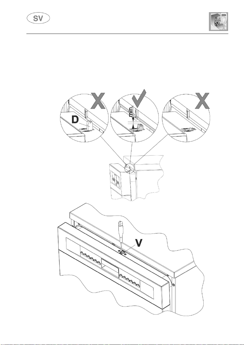 2 - höj den vid behov med hjälp av plastskruven (V) som sitter i närheten