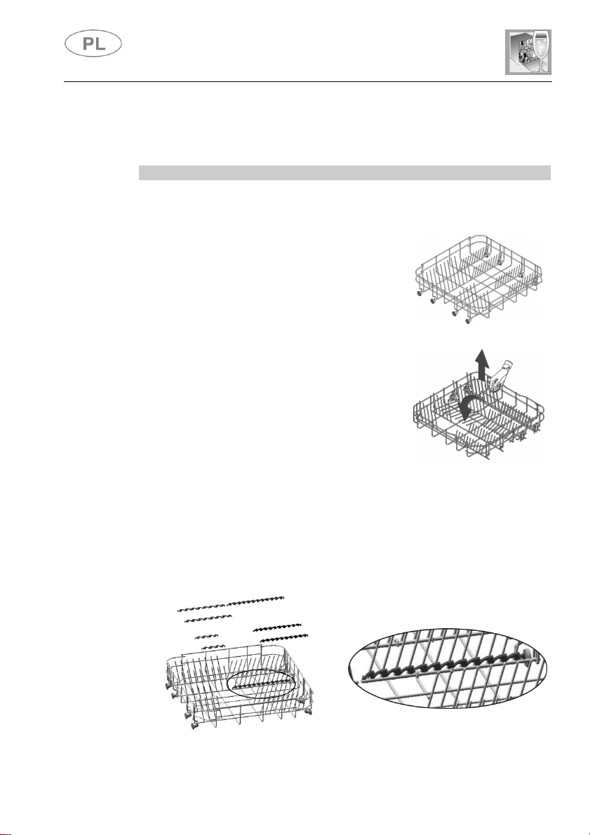 koszy, ramion spryskiwacza, dozowników, filtrów, programów zmywania