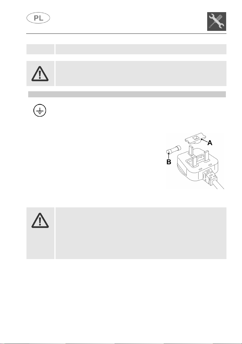 URZĄDZENIE MUSI BYĆ UZIEMIONE ZGODNIE Z OBOW IĄZUJĄCYMI PRZEPISAMI, DOTYCZĄCYMI BEZPIECZEŃSTW A URZĄDZEŃ POD
