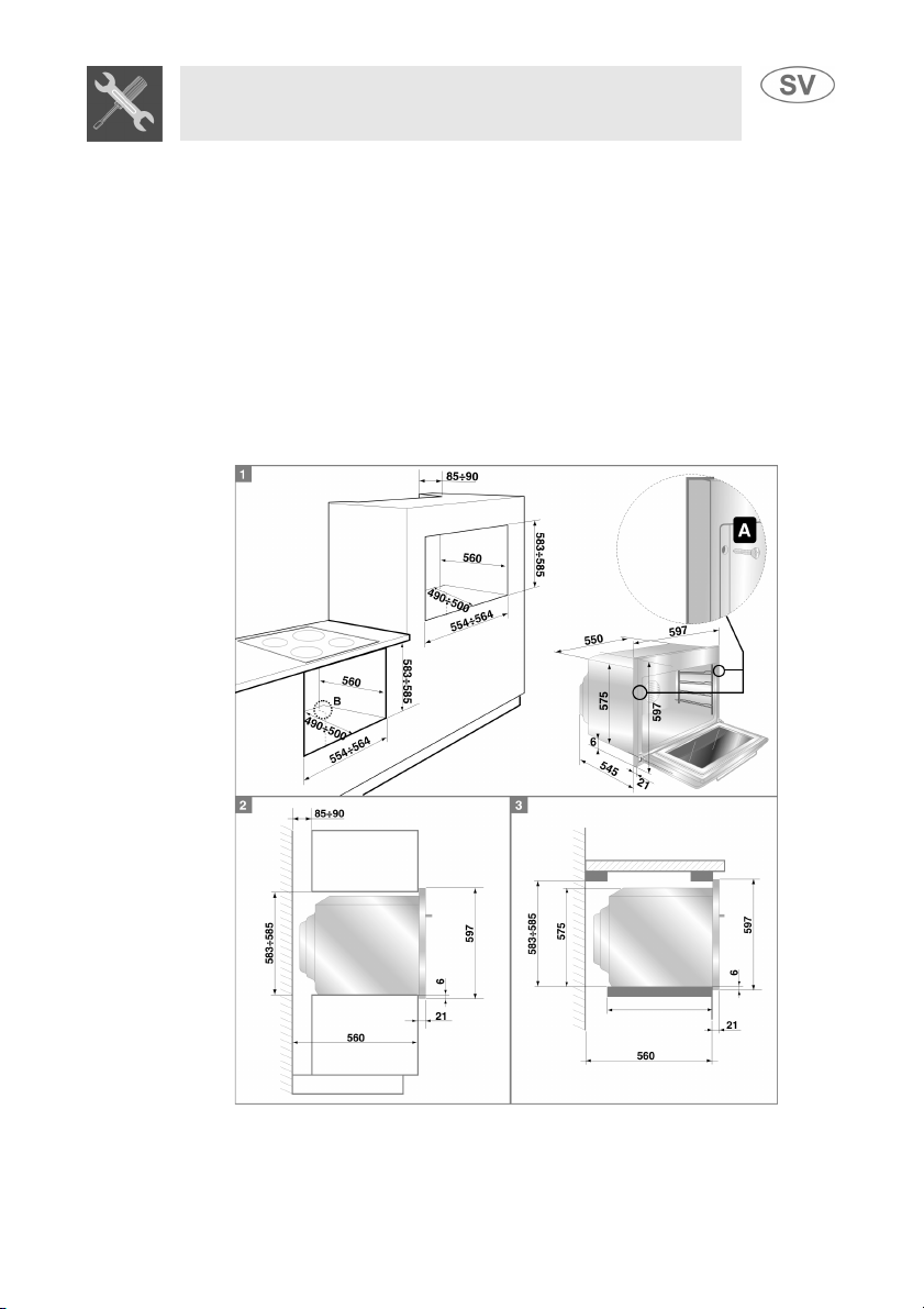 köksbänk ska de mått följas som anges i fig. 1-3. Vid placering under en