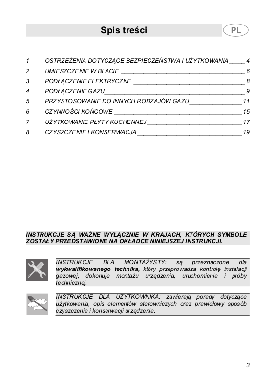 4PODŁĄCZENIE GAZU ___________________________________________ 9