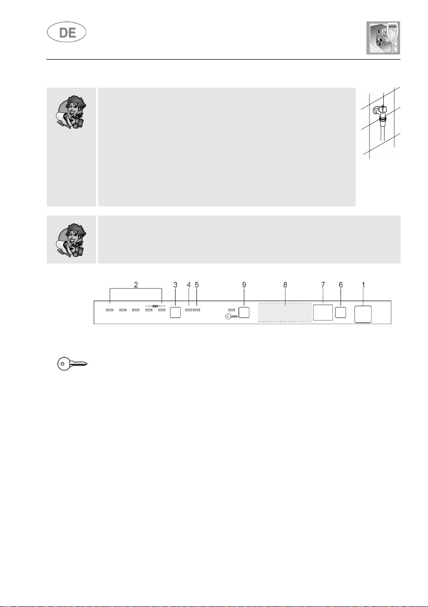DER GERÄTETÜR WIRD DAS ENDE DES SPÜLPROGRAMMS SIGNALISIERT. DIE OPTION WIRD MIT DER TASTE MIT
