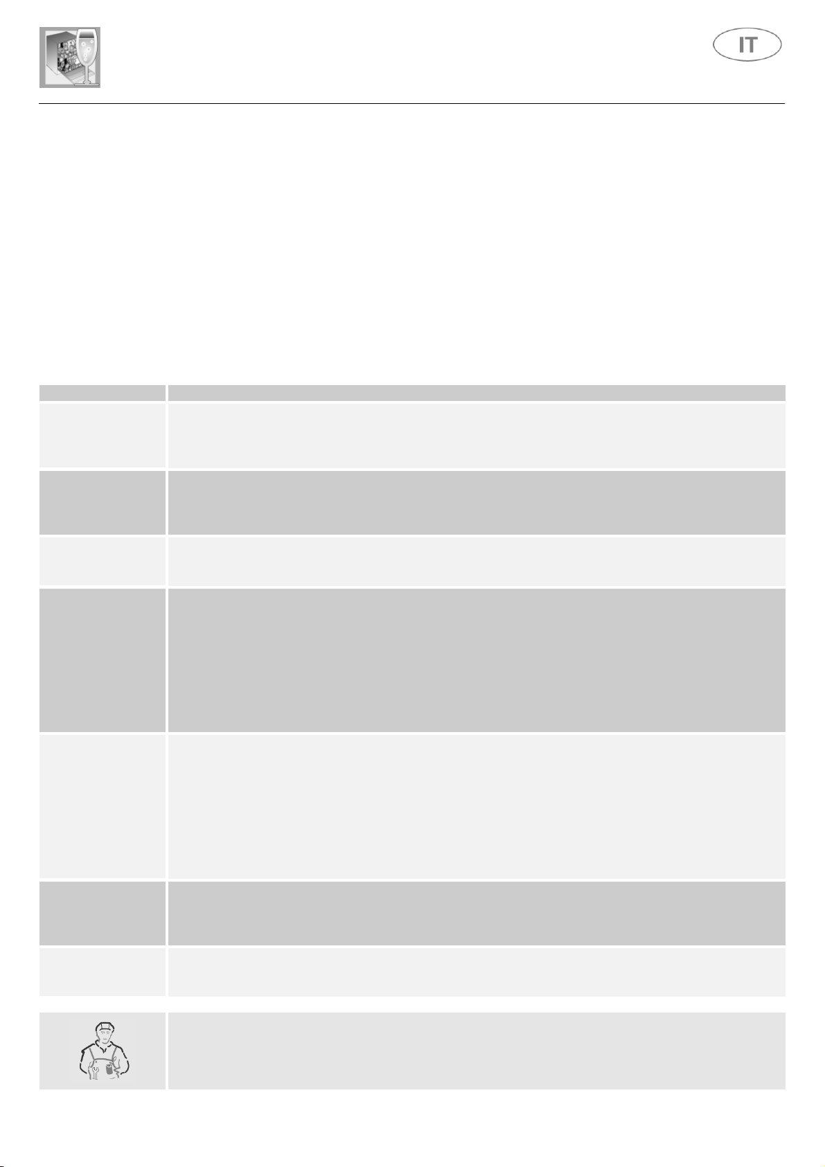 Nel caso in cui l'anomalia dovesse persistere, occorrerà interpellare il Centro di Assistenza Tecnica
