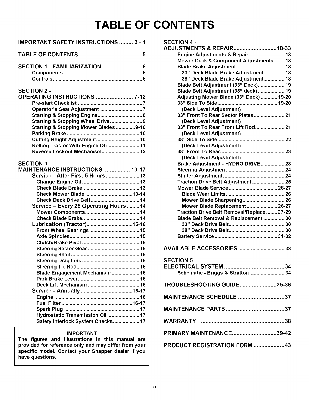 and Instructions In your Snapper Operator's