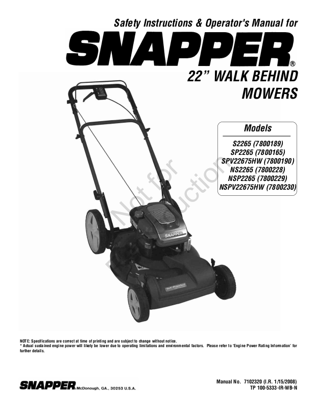 Thank You for purchasing this quality-built Snapper mower. We’re pleased that you placed your