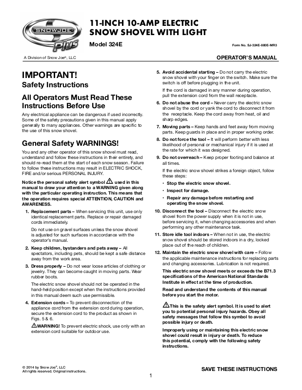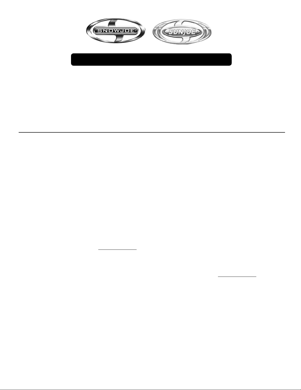 purchased at snowjoe.com or by calling 1-866-SNOWJOE